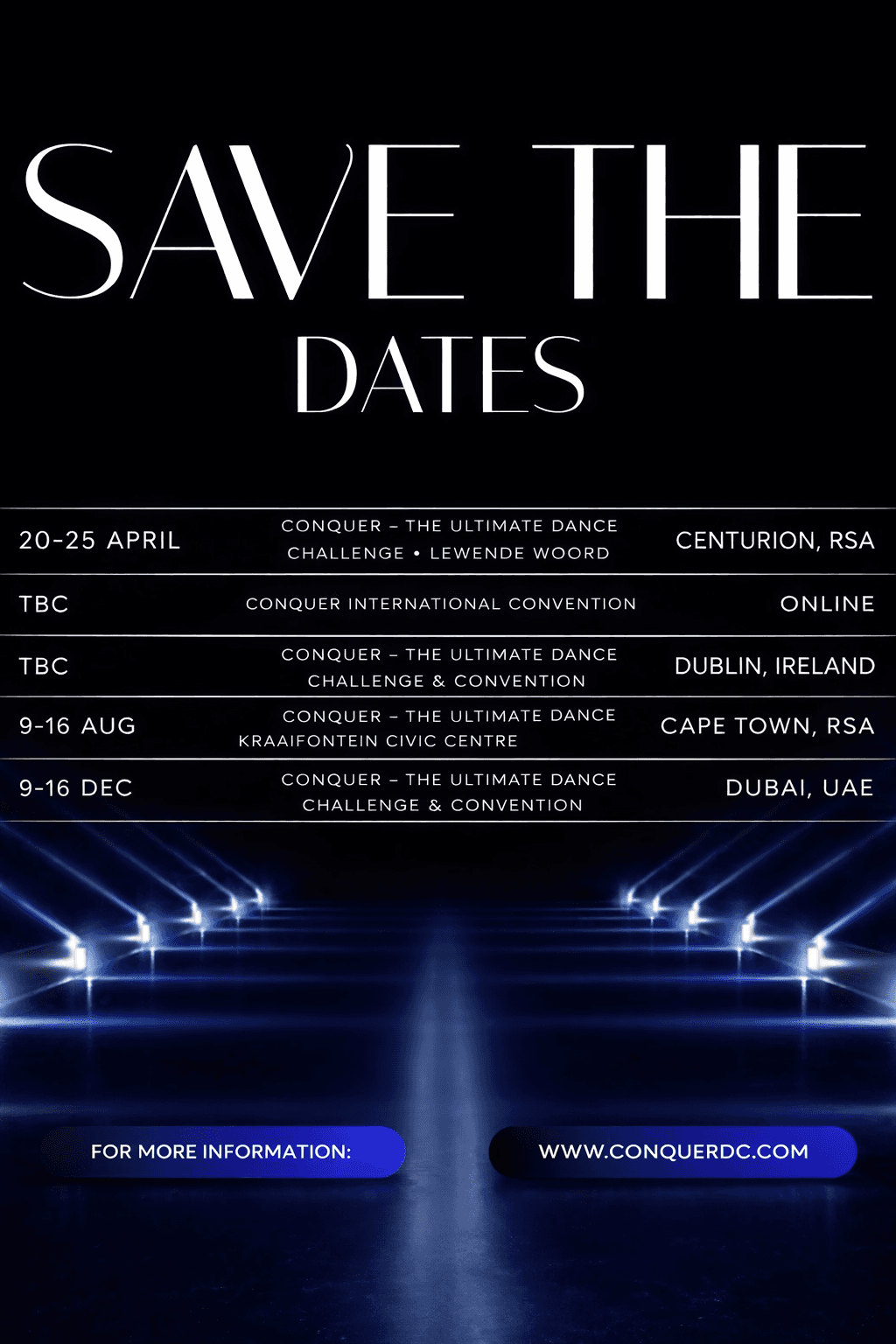 To plan and carry out outstanding dance competitions that offer dancers, instructors, choreographer, and spectators a fulfilling and enriching experience while maintaining the highest standards of professionalism, fairness, sportsmanship, and accessibility for all dancers.